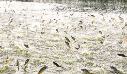 2.增加水體溶氧。有增氧設(shè)備的可在晴天中午堅(jiān)持開啟增氧機(jī)2小時(shí)以上,遇到陰雨天或天氣突變,要及時(shí)開啟增氧機(jī)。如無(wú)增氧機(jī)的可采用潛水泵在池內(nèi)打循環(huán)水(時(shí)間在下午3時(shí)前,切忌在傍晚進(jìn)行),增強(qiáng)水體的對(duì)流與交換。